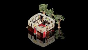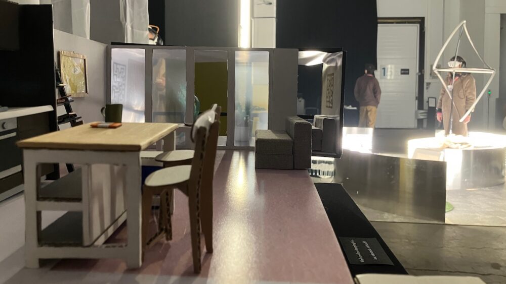 Je kan bij hun miniaturen een QR-code scannen, waardoor daarin een live ingescand AR-figuurtje verschijnt (niet de bewoners zelf, maar acteurs, omdat Knowles en Sowerwine dankzij een gewonnen prijs het volumetric capture-scannen in Eindhoven konden doen), dat in zijn naturalisme gek genoeg net andersom functioneert: niet, zoals het kartonnen knutselhuisje, iets uit zichzelf kleins dat iets groots oproept, maar iets in wezen groots dat kunstmatig verkleind oogt. Dat is natuurlijk ook wat het is, maar toch bevreemdt het een beetje dat het bij deze twee verkleinde weergaven van de werkelijkheid ook zo voelt.