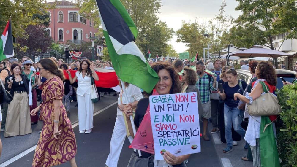 Op zaterdagavond protesteerden duizenden op het Lido tegen de Israëlische genocide in Gaza. Het was het grootste Palestina-protest op een filmfestival tot nu toe.