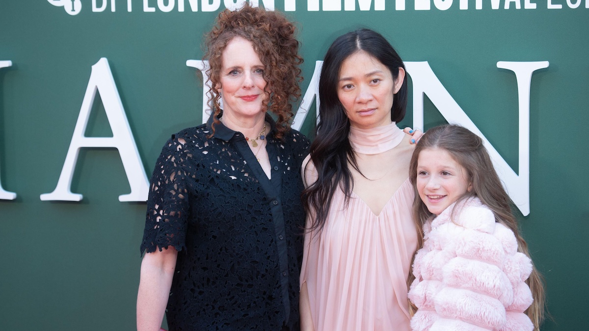 3CWDYJY London, UK. 11 Oct, 2025. Pictured: (L-R) – Maggie OFarrell, Chloe Zhao and Olivia Lynes attends the ‘Hamnet’ Headline Gala at The 69th BFI London Film Festival at Royal Festival Hall, Southbank. Credit: Justin Ng/Alamy Live News