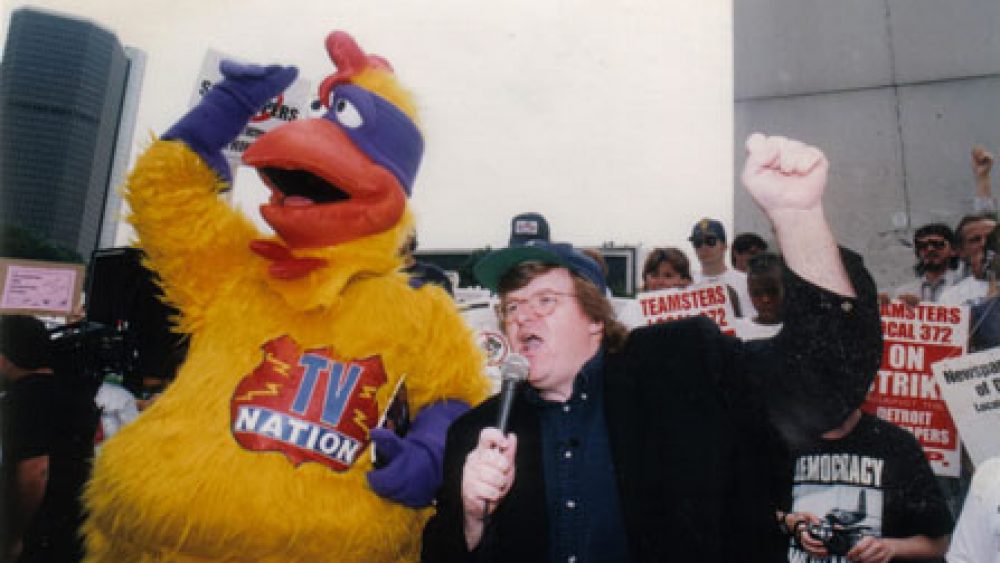 manufacturing dissent spiegelt zich expliciet aan het werk van Moore, en met name aan zijn roger & me (1989). In die film achtervolgde Moore de directeur van General Motors, Roger Smith, in een poging hem te spreken over het sluiten van de GM-fabriek in Moore’s geboorteplaats Flint. Caine en Melnyk achtervolgen Moore met dezelfde vasthoudendheid en dezelfde verontwaardiging over de herhaalde weigeringen en smoesjes van de regisseur. Hun pogingen zijn tevergeefs, net als die van Moore in roger & me dat waren. Tenminste, in de film: misschien wel de grootste onthulling in manufacturing dissent is dat Moore wél met Smith heeft gesproken, maar het materiaal welbewust uit de film liet.