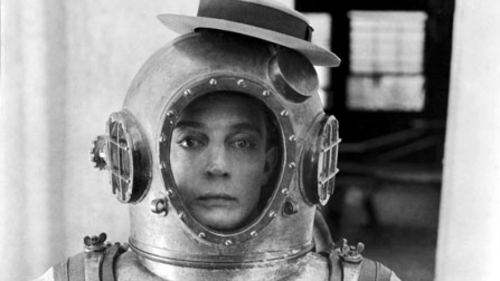 In mijn recensie van de nieuwe blu-ray uitgave van Jaws schreef ik vorige maand over het onwerkelijke, unheimische effect dat een al te scherpe digitale oppoetsbeurt kan hebben bij een film uit de archieven. De Amerikaanse distributeur Kino kiest bij zijn uitgaves van het werk van Buster Keaton voor de tegenovergestelde aanpak: de filmkopieën worden gedigitaliseerd zoals ze zijn, zonder significante wijzigingen te maken. Geen ‘digital noise reduction’, geen ‘edge enhancement’, zelfs de lassen in het celluloid worden intact gelaten. De enige digitale ingreep in The Navigator, de meest recente uitgave in de reeks, is het tinten van de film, en dat gebeurde volgens de originele instructies van Keaton zelf — blauw voor nachtscènes, groen voor onderwater, sepia voor de rest van de film.