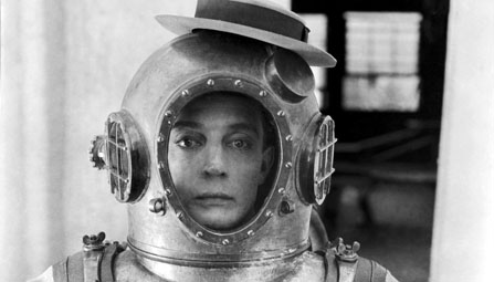 thumb: Thuiskijken Datum 01-10-2018 Auteur Deel dit artikel 1924: American comedian Buster Keaton (1895-1966) wearing a deep-sea diver suit with his trademark hat perched on top in a scene from his latest film ‘The Navigator’.