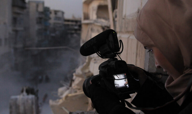 Als de dood uit de lucht komt vallen, pakken moedige burgers hun wapens op. In het geval van filmmaker Waad...